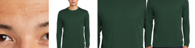 100% polyester • 3.5-oz. • moisture-management/antimicrobial performance fabric • self-fabric collar • sport paneled shoulder for maximum movement • double-needle hem with tack • left-sleeve heat • Sizes: S-4XL