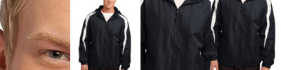 100% sanded microfiber polyester • Fully lined with 100% polyester taffeta • Water- and wind-resistant • Locker loop • Contrast armhole and sleeve inserts • Side pockets • Spandex reinforced tipped rib-knit v-neck collar and cuffs • Badger logo on left sleeve • Sizes: XS-6XL