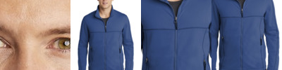 Made for movement, this sophisticated, stretch-infused twill fleece jacket has a smooth face and brushed fleece backing. Tonal welding details at the pockets and streamlined tailoring give it a refined look for indoor and outdoor uses. Molded reverse coil zippers. Front zippered pockets. Contrast Eddie Bauer heat transfer logo on the left sleeve. Made of 8.3-ounce, 94/6 poly/spandex fleece with an anti-pill finish.