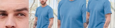 - Double-needle hemmed sleeves and bottom