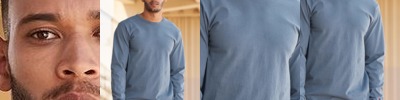 - 1x1 ribbed collar with double-needle coverstitching on front neck